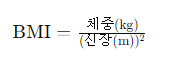 체질량지수(BMI)는 다음 공식으로 계산할 수 있다: