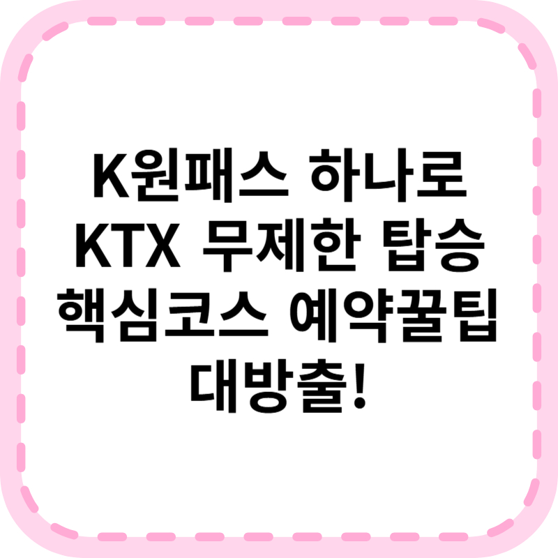 KTX를 타고 전국을 자유롭게 여행하고 싶나요? K원패스 하나면 가능합니다! 오늘은 KTX 무제한 이용법과 함께, K원패스 초보자 가이드를 쉽고 빠르게 정리해드립니다. 지금부터 따라오세요! KTX 무